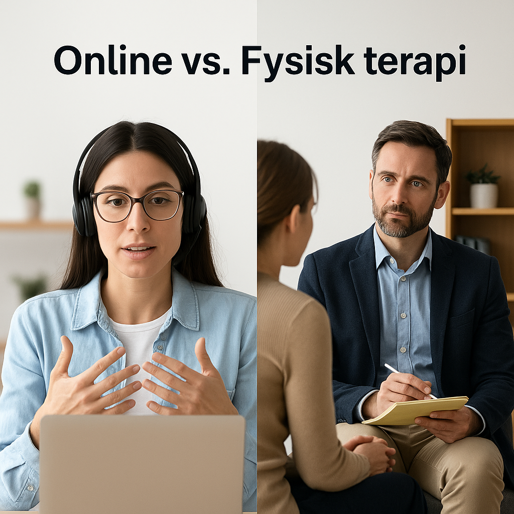 Online og fysisk terapi har hver deres styrker og begrænsninger. Overvej dine behov, og vælg den løsning, der giver dig bedst mulig ramme for at arbejde med dine udfordringer. Det vigtigste er ikke formen, men at du finder en terapeut, du føler dig tryg hos.